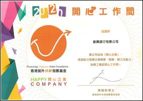 获香港提升快乐指数基金及香港生产力促进局颁发“开心企业”标志